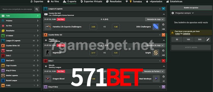 A aposta 571bet oferece aos jogadores a experiência mais conveniente de apostas em eSports!